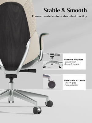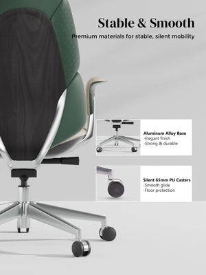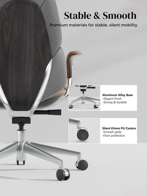 High-quality semi-aluminum silent casters, certified by SGS/Greenguard gold medal/TUV ergonomic standards.